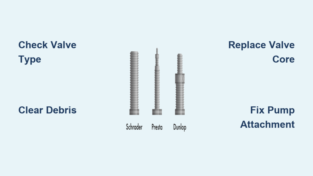 Schrader-specific solution: Ensure the pump head’s internal seal contacts the valve fully. Some pumps require screwing the head onto the valve—don’t skip this step. Listen for air escaping around the connection as you pump.