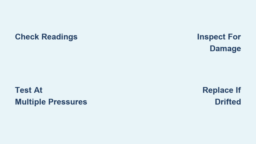 • Monthly: Compare against a known-accurate reference at multiple pressure points