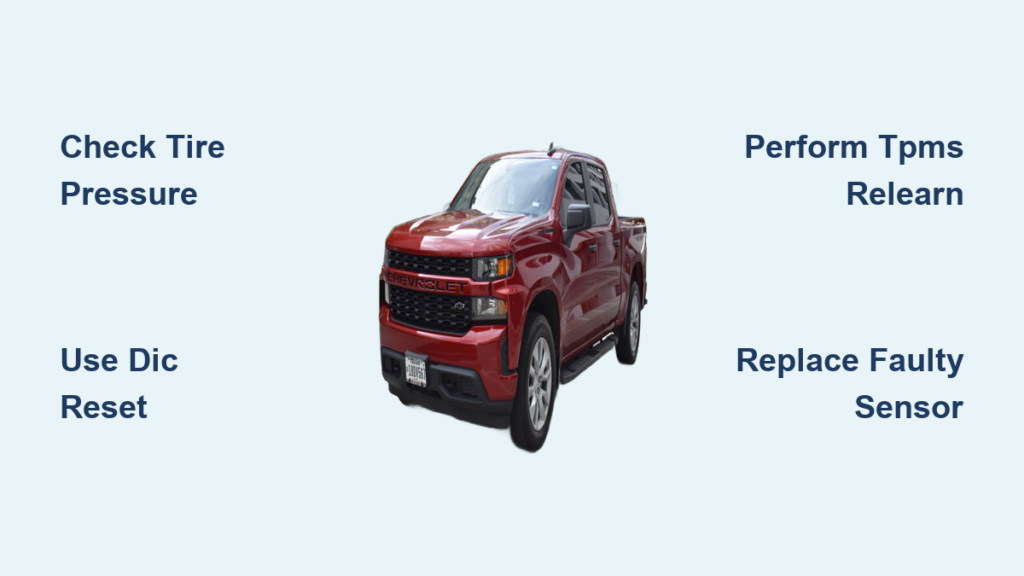 When simple DIC reset doesn’t work—or after you’ve rotated tires or replaced sensors—you need the full TPMS relearn procedure to teach your Silverado each sensor’s location.