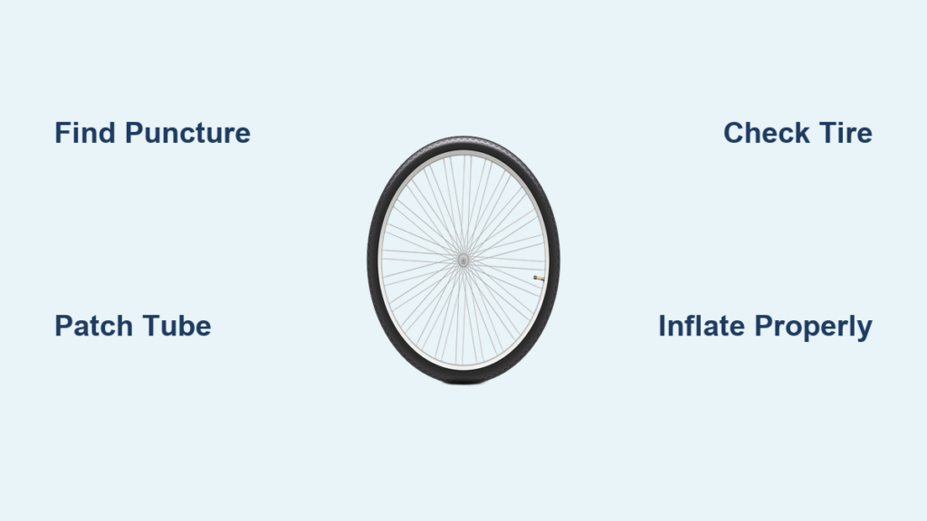 A patched tube will fail again if the original cause isn’t addressed. Never reinstall without verifying the tire is clean and intact.