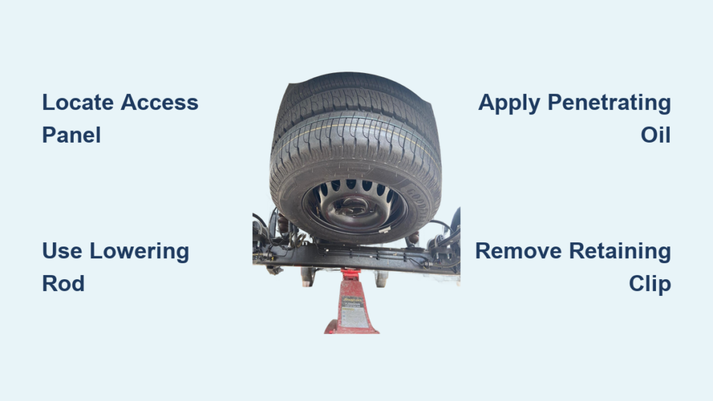 Before proceeding, verify your specific model’s configuration. Check your owner’s manual if available, or look for Ford part numbers near the access panel that can help identify your exact mounting system. This prevents wasted effort trying to access the mechanism from the wrong location—a common mistake that delays getting your spare tire when you need it most.