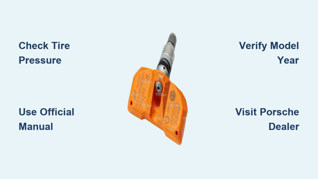 Red flag: Any guide claiming “no tools needed” for 2018+ Cayennes is dangerously outdated. Modern models lock TPMS resets behind anti-theft protocols.
