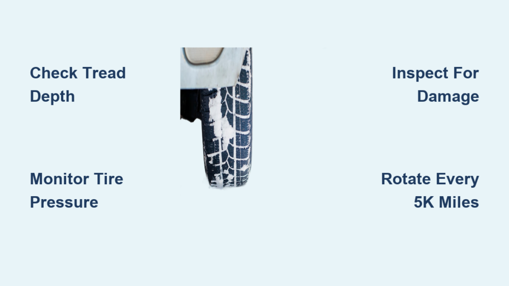 Complete this 5-minute inspection before every winter trip to ensure your tires are ready for challenging conditions: